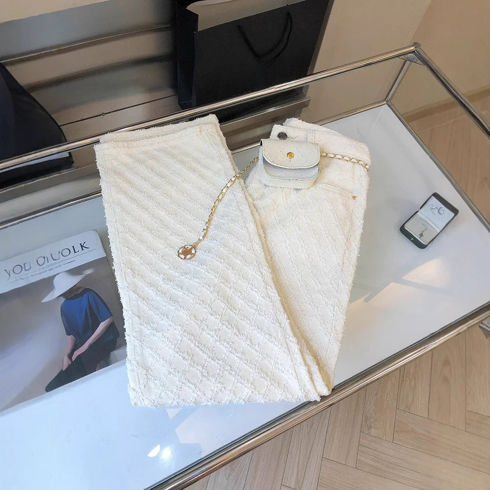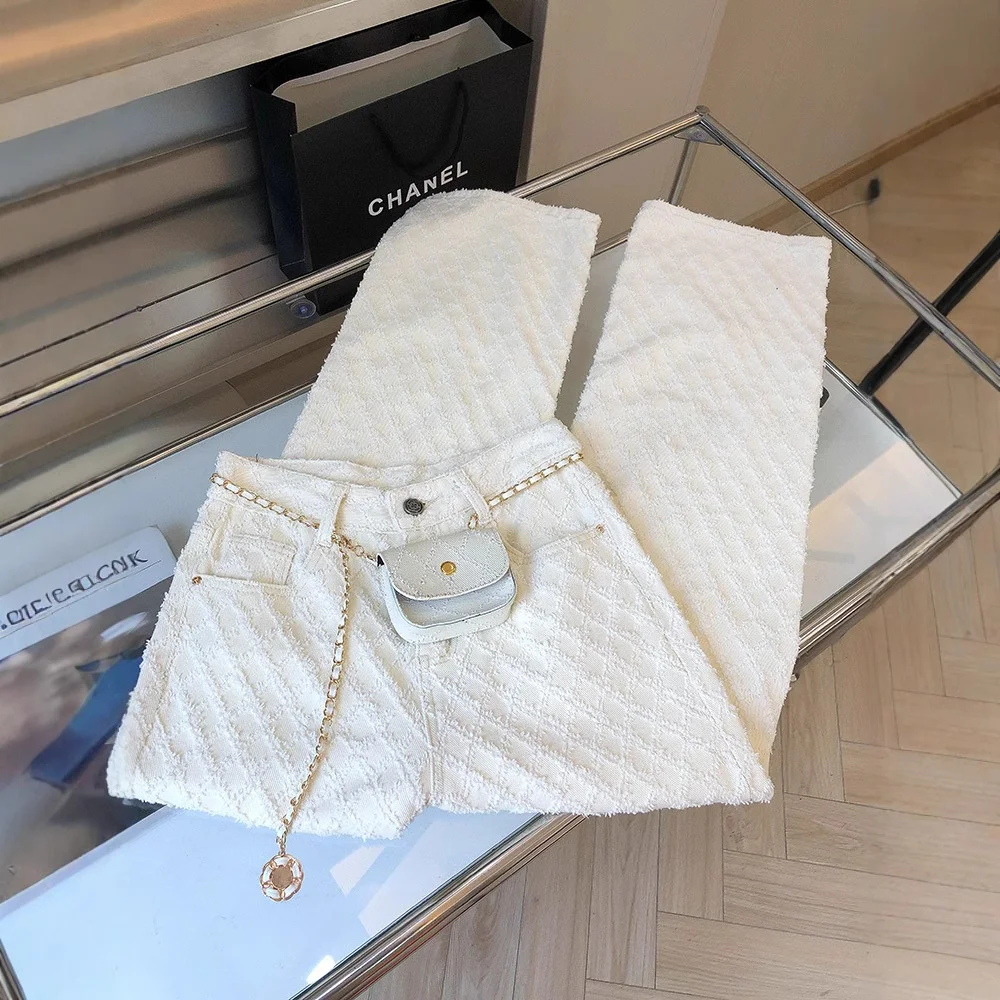 Featuring a chic design inspired by the small parfum style, these jeans exude a sophisticated charm perfect for the fashion-forward.